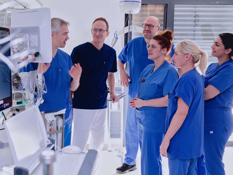 Wir bieten Ihnen ein breites Spektrum invasiver (operativer) und nicht-invasiver (ohne Operation) Diagnostik und Therapiemaßnahmen an, von Durchblutungsstörungen der Herzkranzgefäße bis zum Herzinfarkt, entzündlichen Herzerkrankungen, angeborenen und erworbenen Herzklappenfehlern, allen Formen der Herzschwäche, Herzrhythmusstörungen, aber auch bei diversen Erkrankungen der Arterien und Venen wie Thrombosen, Embolien oder Lungenembolie. Darüber hinaus stellt ein Schwerpunkt unserer Klinik die Abklärung seltener Ursachen von Bluthochdruck (auch invasiv) und die medikamentöse Neueinstellung dar.