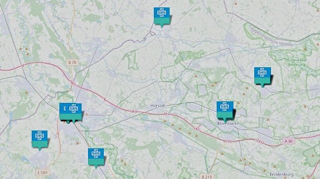 Kostenpflichtige Parkplätze (ersten 30 Minuten kostenlos) stehen Ihnen unmittelbar an der Einrichtung zur Verfügung. Die Parkgebühren belaufen sich für die erste Stunde ab 1,50 € und für jede weitere Stunde auf 1,00 €, Langzeitparkende bezahlen pro Tag 10,00 €. Kostenfreie Parkplätze sind fußläufig nahe des St.-Elisabeth-Hospitals im Ortskern Mettingens erreichbar.